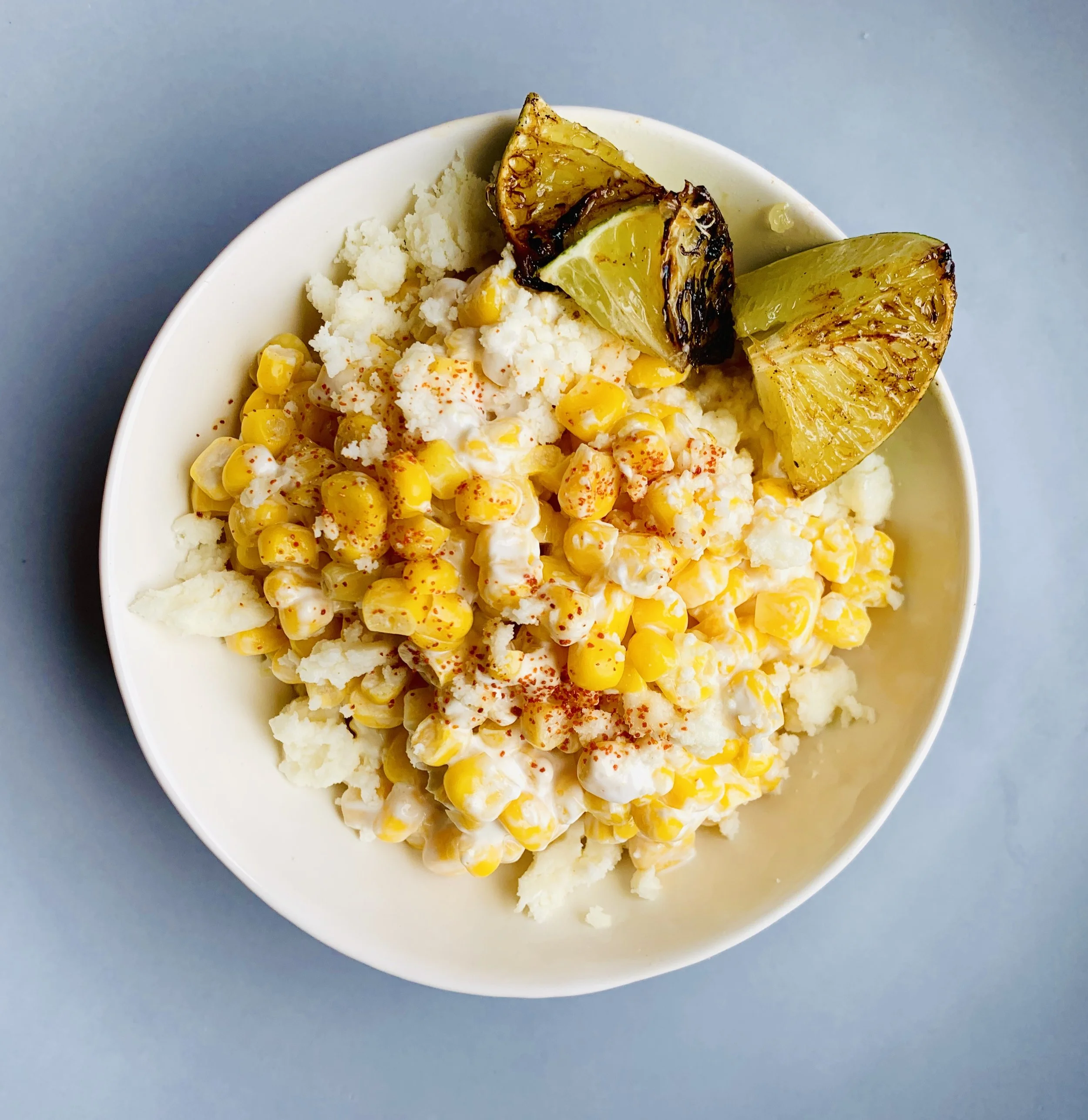 This corn is soooo good. In the summer during corn season, I grill the cobs first before making the dish, but in the winter don’t be scared to use frozen corn!